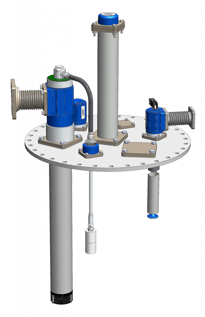 The 720 x 16 mm modular tanklid is machined and equipped with 2”, 3” and 4” openings in a user-definable pattern. All freely orientable components are flange-mount from the top side with four bolts only, for simple and quick installation and reduced maintenance.